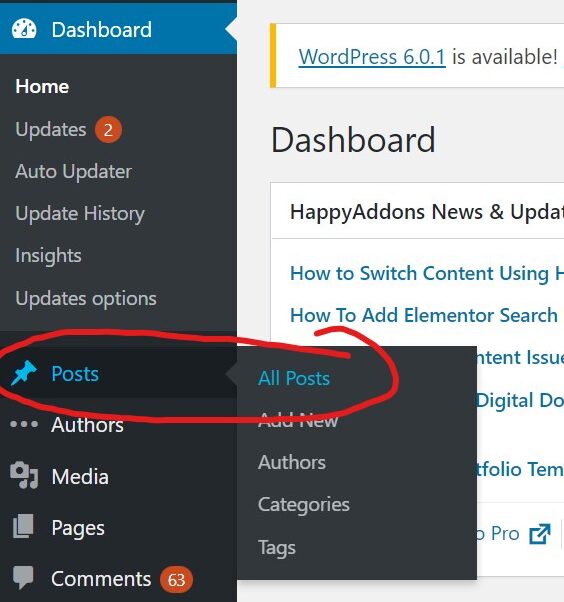 - Din Dashboard – acceseaza Posts si Add New pentru a crea un articol nou sau Apasă din bara de sus pe New